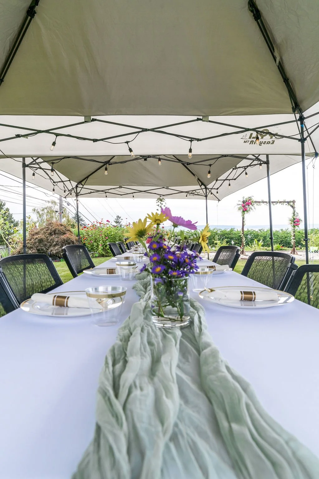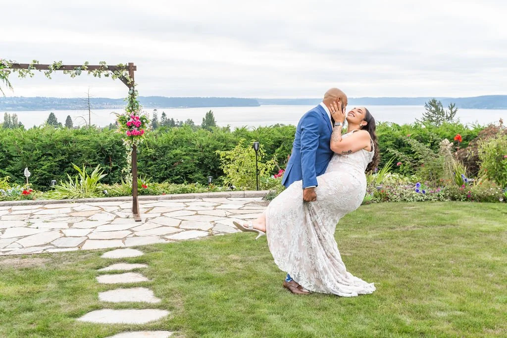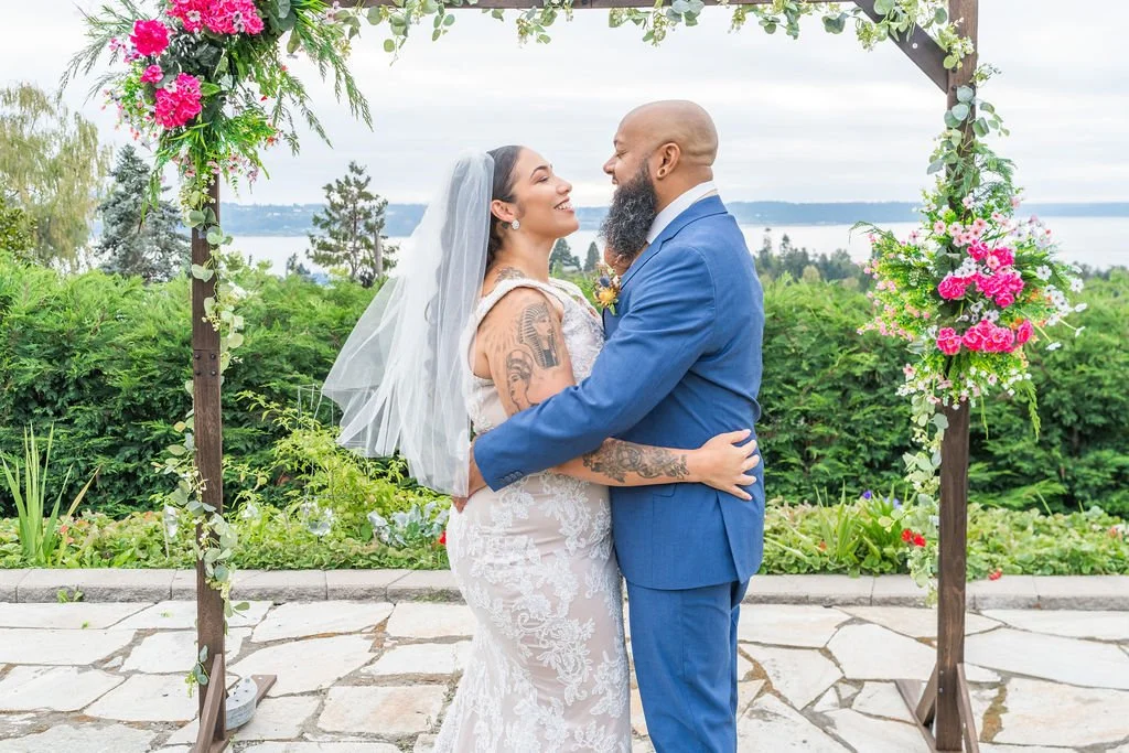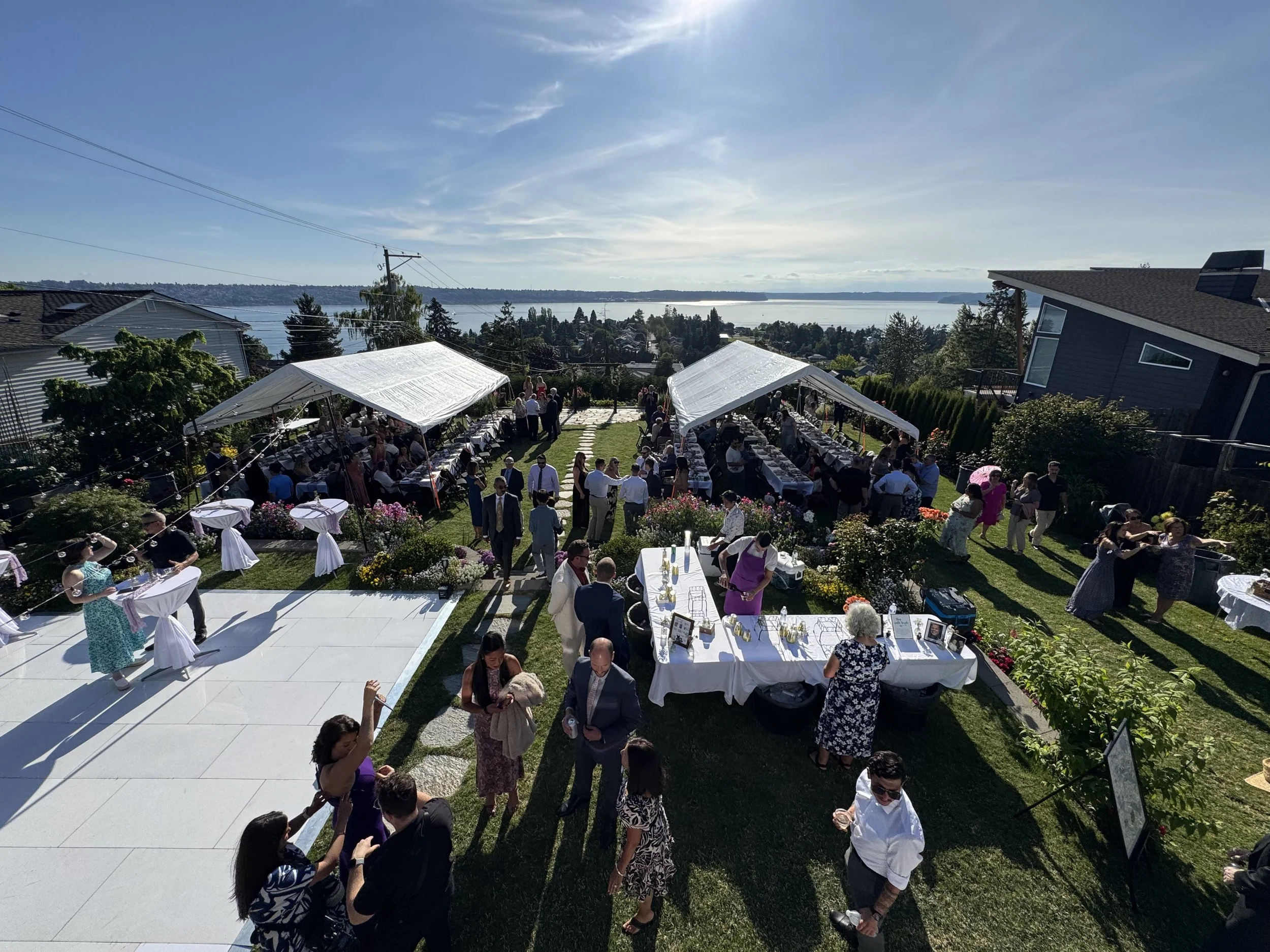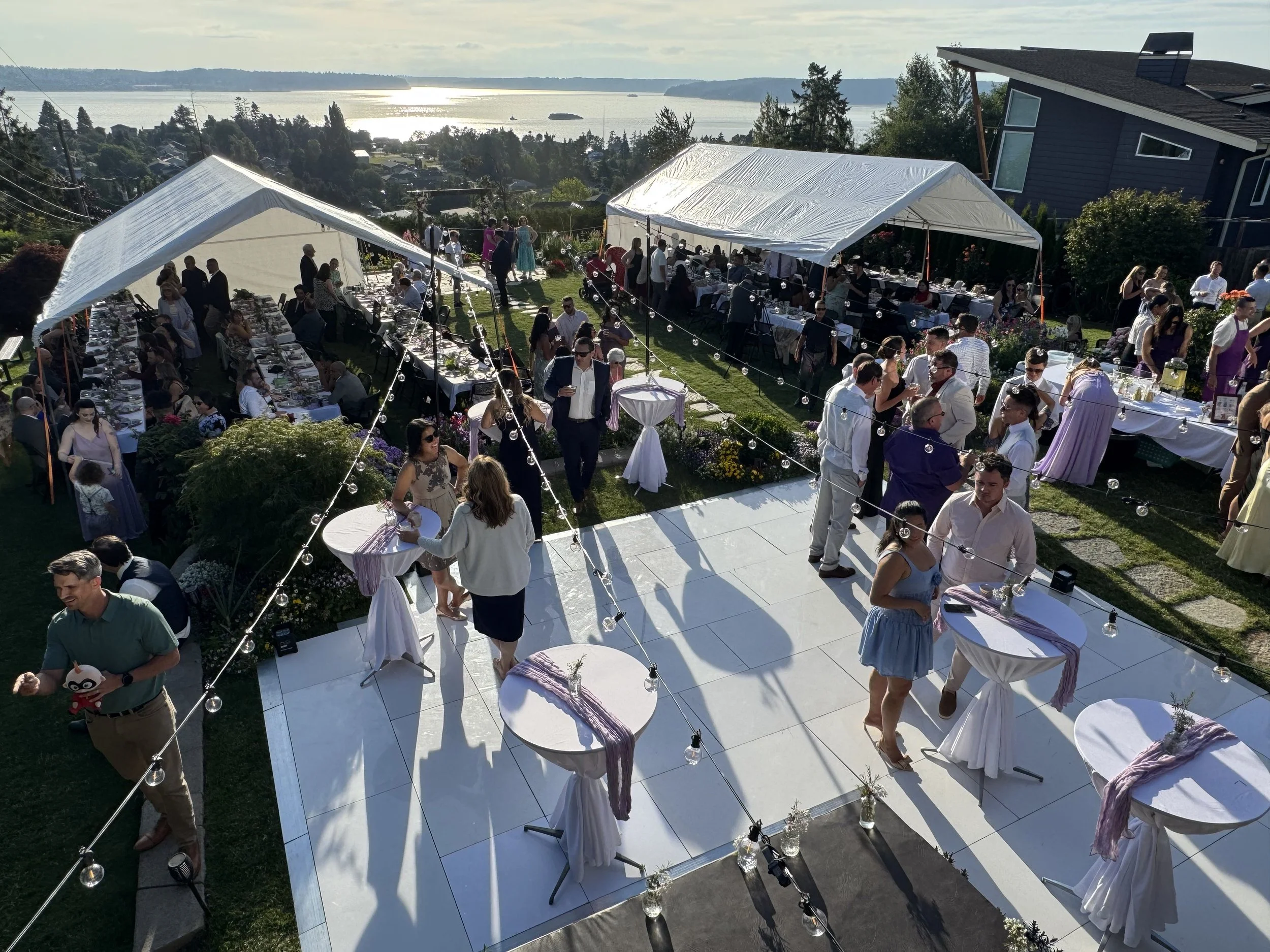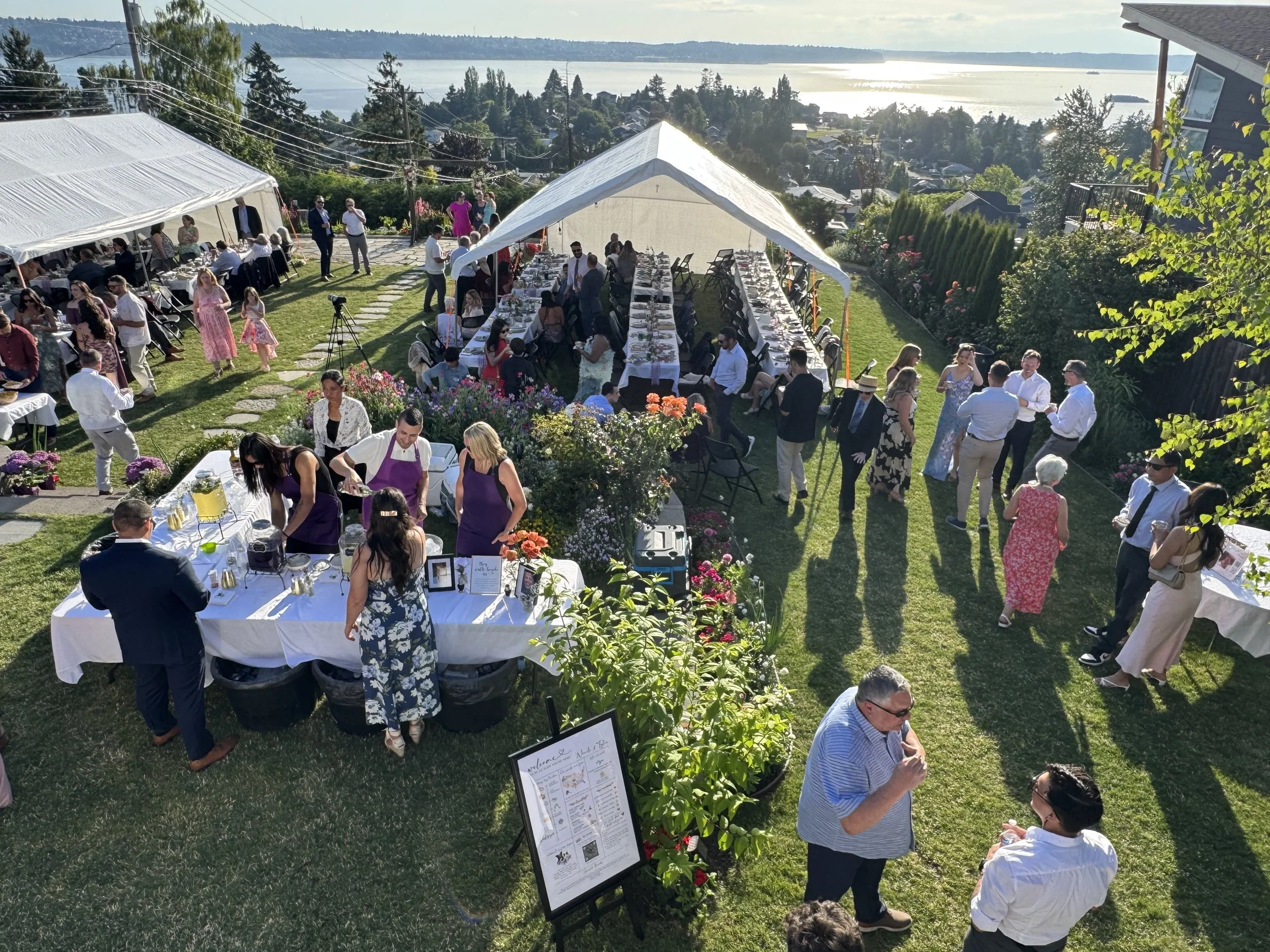 a privately owned garden estate in Tacoma, WA. What began as Damian’s passion for growing fruits and vegetables transformed into a space where couples and families now gather to celebrate life’s most precious moments. Surrounded by lush greenery and panoramic water and mountain views, our venue offers an intimate, magical setting for your wedding or special event.